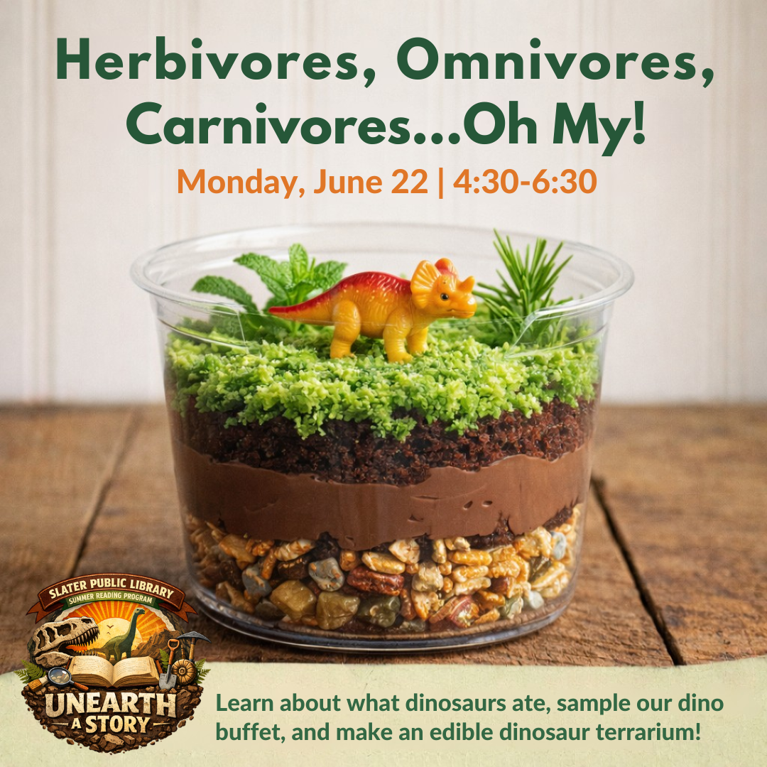 This is a drop-off program for our younger elementary kids where we explore fun stories and corresponding activities.  We will also be tending our library garden sponsored by Syngenta and the Slater Garden Club.
