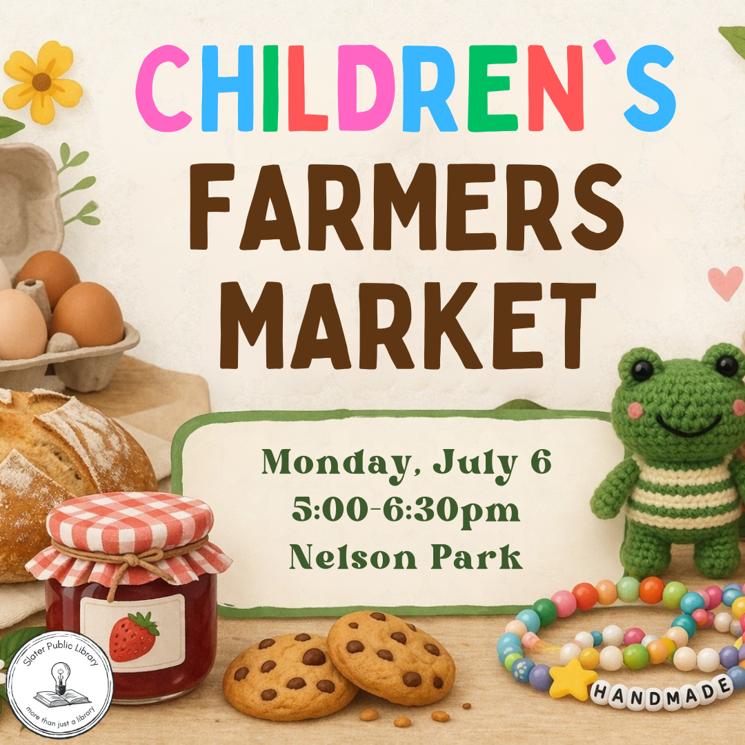 Please join us at the library as we support our community's young entrepreneurs at the Children's Farmers Market. Snack mixes, lemonade, sweets, crafts, flowers, vegetables, jewelry, and so much more! If your child/ren are interested in signing up to have a stand at the market, we're going to have an informational meeting for families, on Wednesday, June 11 at 6 PM, where we'll talk through a basic business plan (possible items to sell, pricing, signage, & other logistics). We'll also release the Google Form sign-up that same night. Then we'll have a follow-up, drop-in opportunity for kids who have committed to having a stand at the market. This will give us time to discuss how the planning is going, answer any questions the kids might have, offer a monetary change-making practice session, etc. We'll also have some poster-making supplies on hand, so if the kids want to make a sign for their stand here at the library, they're more than welcome to.