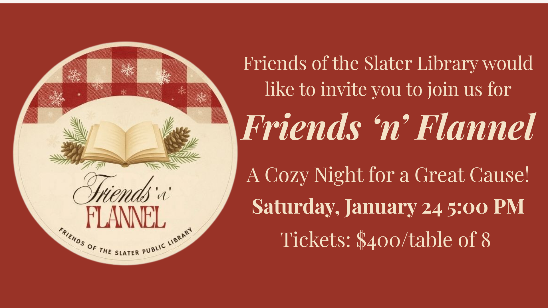 We’d love to partner with you to make this event a success—thank you for supporting the Slater Public Library!